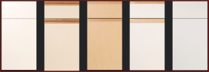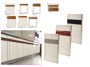 Jika rangka kebanyakannya berwarna putih, yang akan memberikan identiti atau persona kepada kabinet adalah kemasan pintu kabinet.